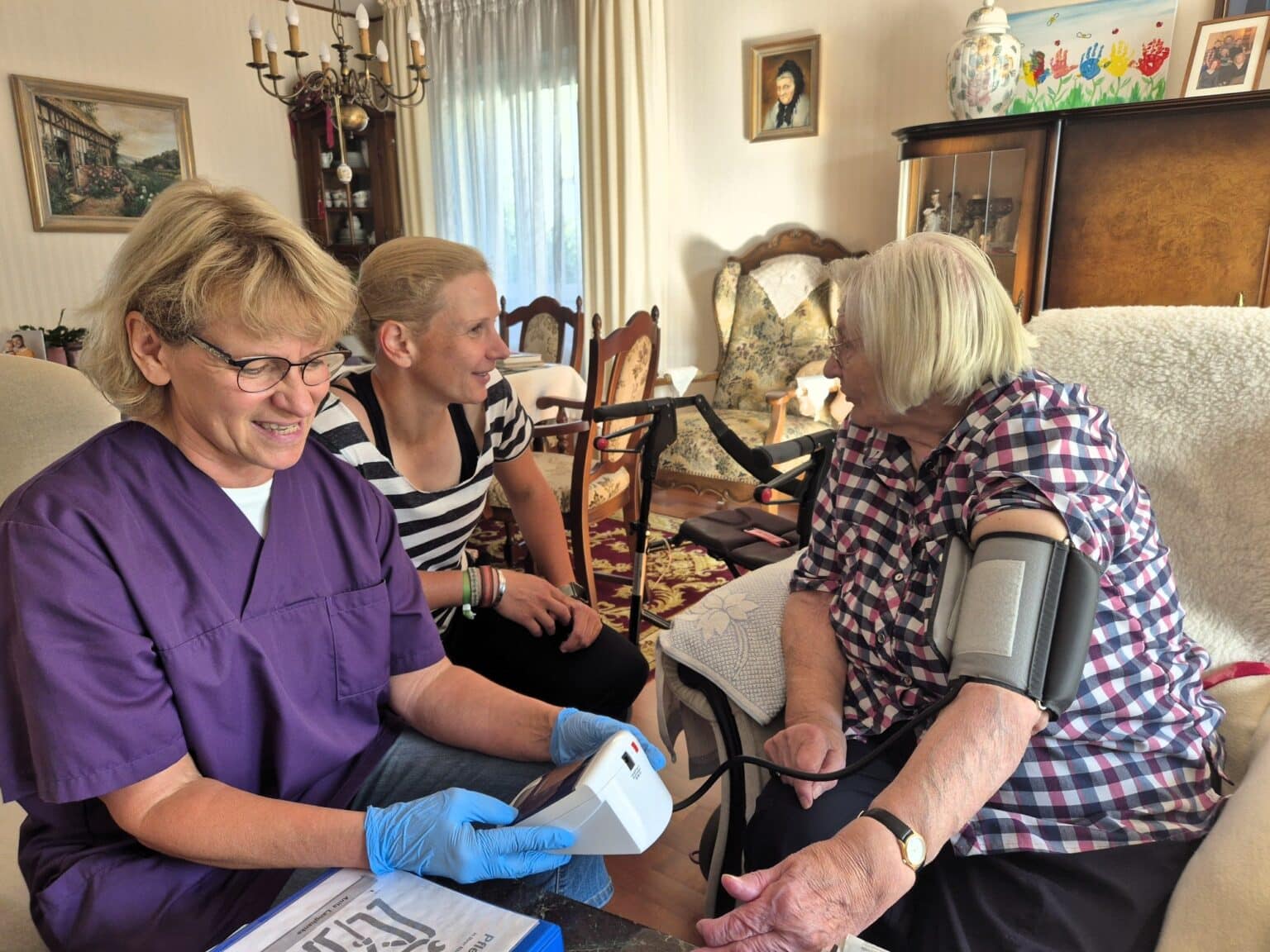 Unterwegs mit der Diakonie 16. August 202522. August 2025 Beim Türwahlkampf ist Friederike Hegemann es gewohnt, den Menschen viel über sich zu erzählen und für ihre Partei zu werben. Bei den ganz anderen Hausbesuchen, die die Bürgermeisterkandidatin der Haller Grünen nun absolvierte, ging es aber mehr ums Zuhören. Eine Schicht lang fuhr Hegemann im Ambulanten Dienst der Diakonie Halle mit, um selbst einmal zu erleben, wie es um die Pflege bestellt ist. „Es gab viele gute Gespräche, mit unseren Kunden und zwischen uns “, berichtet Pflegefachkraft Gabriele Kröger am Ende der Tour durch Hörste, Bokel und Kölkebeck, die beide gemeinsam unternahmen. Vom Stützstrümpfe anziehen über Diabeteskontrolle bis zur Grundpflege reichte die Bandbreite. „Es hat mir viel Spaß gemacht, aber mir auch vor Augen geführt, wie endlich alles ist und wie wichtig Berufe in der Pflege sind, um unsere Gesellschaft zusammen zu halten“, sagt Friederike Hegemann nach ihrer Visitation im Gespräch mit Diakonie-Vorstand Andreas Riedel und dem Leiter der Diakoniestation Halle, Bastian Hlawatsch. Dabei steht vor allem die Frage „Was wünscht ihr euch, was braucht ihr?“ im Zentrum – was kann Politik machen, um die Träger der Pflegeeinrichtungen in Halle zu unterstützen? Mehr Öffentlichkeit ist Bastian Hlawatsch wichtig, eine bessere Sichtbarkeit der Pflegeangebote in der Stadt und eine bessere Vernetzung zwischen den Akteuren. An diesem Thema ist Friederike Hegemann schon dran, es gibt bereits eine Idee, Angebote der Stadt, der Vereine und Träger wie der Diakonie zu bündeln, durch so genannte Seniorenlotsen. Die sollen als „Kümmerer“ pro aktiv Sozialarbeit leisten und auf die Menschen zugehen. „In Verl gibt es zum Beispiel dazu schon erfolgreiche Projekte, so etwas kann ich mir bei uns auch unbürokratisch gut vorstellen. Ich bin selbst kein Verwaltungsmensch, aber ich bin jemand, der alle zusammenbringt“, sagt die nicht nur bei den Grünen, sondern auch in der Interessengemeinschaft Künsebecker Bürger und im Sportverein sowie in der Kirchengemeinde aktive Ehrenamtliche. Für die Seniorenlotsen könne sie sich aber durchaus eine bezahlte Stelle vorstellen, die dann wiederum alle an einen Tisch bringt. Auch die Diakonie im Kirchenkreis Halle ist gerade an diesem Themengebiet dran, verrät Andreas Riedel, man wolle eine Stelle zur Ehrenamtskoordination einrichten. Aber auch die, sagt der Vorstand, könne nicht die fehlenden Fachkräfte kompensieren. „In den nächsten fünf Jahren werden rund 20 Prozent unserer Mitarbeitenden in Rente gehen und es kommen nicht genug Kräfte nach. Deswegen würden wir uns da Unterstützung wünschen“. Gerade für Auszubildende sei es schwer in Halle bezahlbaren Wohnraum zu finden, oft haben diese ihren Lebensmittelpunkt in einer der größeren Städte in der Umgebung und verlassen Halle nach ihrem Abschluss. Halle attraktiver zu machen, hält Riedel deshalb für wichtig, zum Beispiel mit einem Wohncampus für Auszubildende der Haller Unternehmen, der in Kooperation mit der Stadt eingerichtet werden könnte. Aber auch Mehrgenerationenhäuser sind ein wichtiger Baustein, um der Einsamkeit, die viele Diakonie-Mitarbeitende bei ihren Klienten sehen, entgegenzuwirken. „Die ‚Alten‘ gehören zur Gesellschaft dazu, deswegen müssen wir sie aktiv einbinden ins Geschehen“, sagt Pflegefachkraft Gabriele Kröger, die manchmal bei ihren Hausbesuchen der einzige Kontakt für die zu Pflegenden ist. Damit rennt die 62-Jährige bei Friederike Hegemann offene Türen ein, als Wohnberaterin für pflegerelevante Umbaumaßnahmen kennt sie selbst solche Schicksale aus erster Hand. „Im neuen Baugebiet Masch werden wir eine bessere Durchmischung der Generationen haben, aber in diesem Bereich bleibt noch mehr zu tun“. Deswegen möchte Hegemann auch einen „Zukunftsrat“ bei der Stadt etablieren, in dem engagierte Menschen aller Generationen, Ethnien und Hintergründe Visionen für Halle entwickeln können. Gabriele Kröger wäre sofort dabei – allein dafür hat sich das frühe Aufstehen schon gelohnt. „6:30 Uhr Arbeitsbeginn ist nicht meine Zeit“, sagt Hegemann lachend, „aber um zu sehen, wie wichtig diese Aufgabe ist und zu hören, was die Menschen in der Pflege bewegt, mache ich das gerne.“